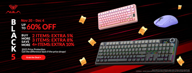 AULA delivers high-performance mechanical and gaming keyboards at unbeatable value. On aulagaming, you get a 365-day free replacement and a 2-year extended warranty, plus fast, tax-free US shipping on bestsellers like the AULA F75 Pro.