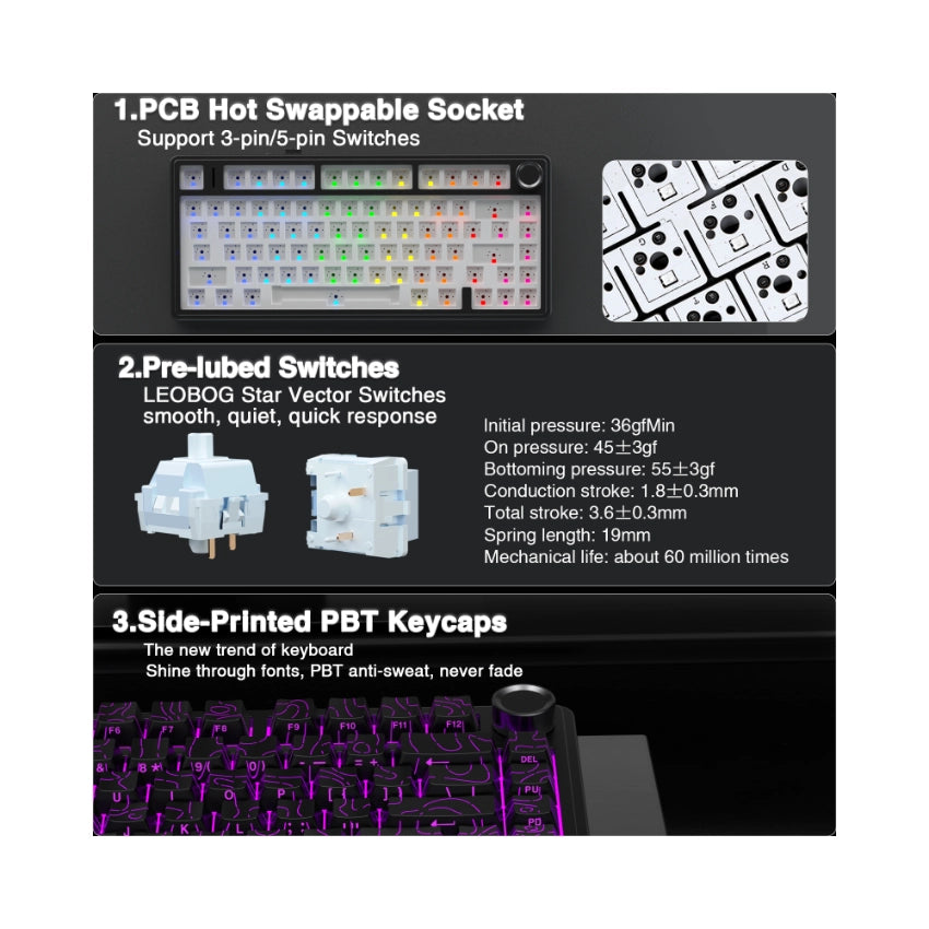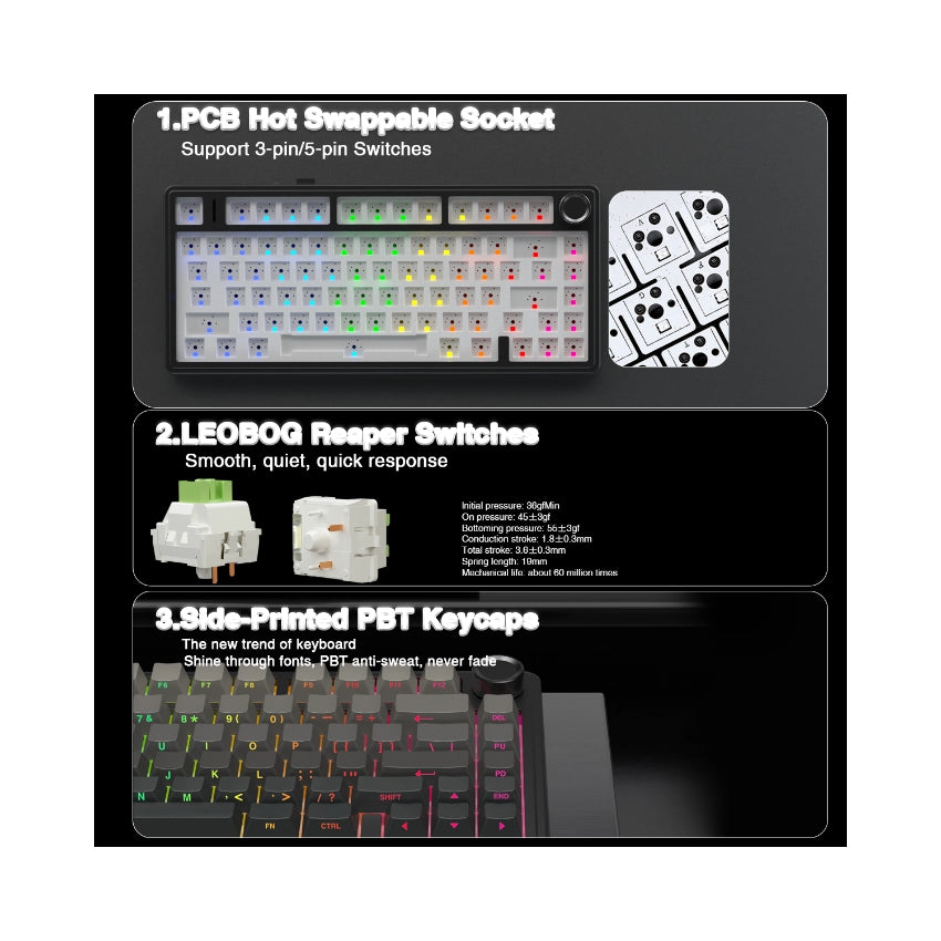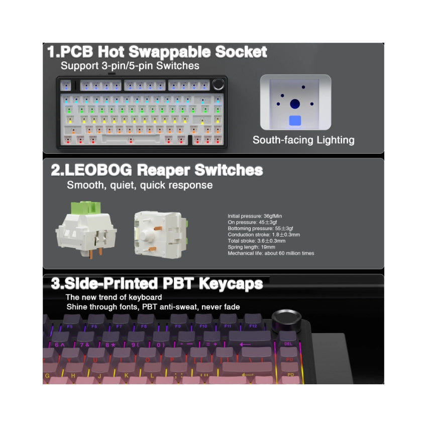AULA F75 Pro Knob Side-Printed Mechanical Keyboard